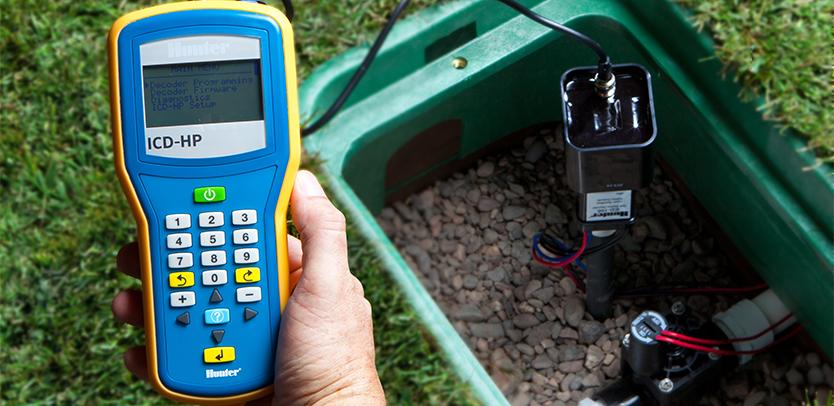- Los decodificadores DUAL pueden programarse in situ con el ICD-HP de Hunter. No es necesario retirar los decodificadores de la ruta de dos hilos