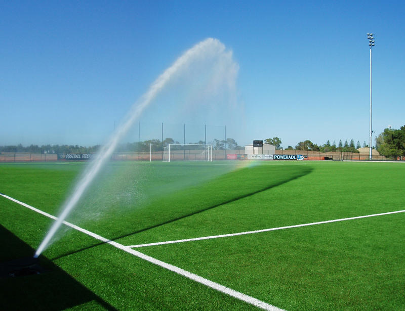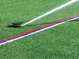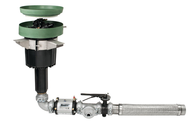 El STK-6V mejorado constituye la primera —y única— solución integrada rentable que se ha diseñado para ir más allá de los requisitos exclusivos del mercado de riego de césped artificial. El sistema ST cuenta con acceso completo por la parte superior a todos los componentes de riego, lo cual facilita el mantenimiento a la vez que mantiene la superficie de juego intacta y segura. El exclusivo sistema de barrera de protección IBS se adapta a cualquier configuración de superficie, incluyendo césped de relleno, césped corto sin relleno, pista de atletismo artificial e instalaciones de hormigón. El colector, sólido y fiable, cuenta con componentes de acero galvanizado de 80 mm y adaptadores reforzados ranurados de tipo Victaulic™. También se incluye una válvula de control de apertura lenta y baja pérdida de presión, una válvula de aislamiento, válvula de drenaje, válvula de acoplamiento rápido y la potente turbina de largo alcance y mecanismo de engranaje ST-1600B.