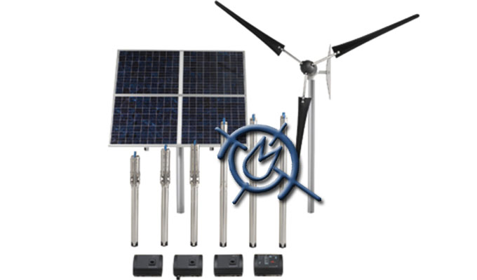 Los paneles solares y las turbinas eólicas de las bombas de la gama SQFlex permiten a estas adaptarse a las condiciones climáticas existentes en cualquier lugar. La energía generada sobrante puede almacenarse en un sistema de baterías de reserva para poder utilizarla cuando no se pueda extraer energía de las fuentes naturales.