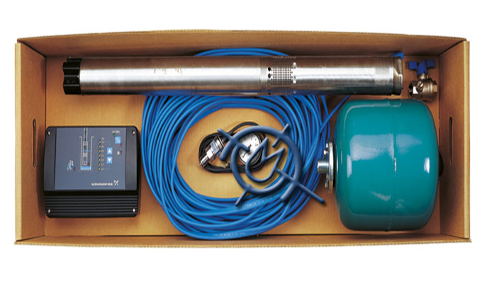 Al conectar una bomba de la gama SQ a la caja de control CU 301 de Grundfos obtendrá un suministro de agua a presión constante.